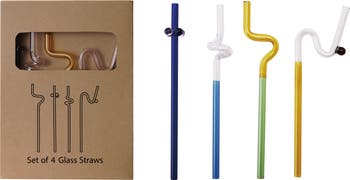 Add the 4-Piece Glass Twisted Drinking Straw Set to introduce a touch of whimsical charm and sustainable style to a home. This delightful four-piece collection features drinking straws made of durable glass, each with a fun twisted design and a rounded ball accent that keeps it from slipping into the drink. The vibrant multicolor palette and the unique twisted design make them a perfect fit for a wide range of styles, from Casual and Contemporary to Boho and Global. Presented in a convenient box, this set is ideal for everyday use or for serving cocktails. This set provides a lovely and functional way to add a touch of personality to a space.