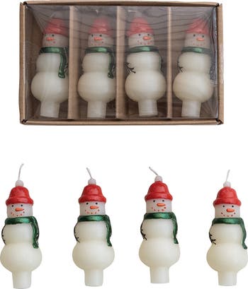 4-Piece Unscented Snowman Shaped Bottle Taper Candles in Box, Multicolor
