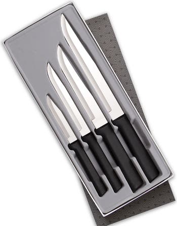 The Rada 4 Piece Wedding Register Set is a perfect gift for newlyweds and home chefs alike. It includes a 3.25" Paring Knife, 4.85" Utility/Steak Knife, 5.4" Stubby Butcher Knife, and 7" Slicer Knife. Each features a surgical-grade T420 high-carbon stainless steel blade, hand-sharpened to a razor-sharp edge. Made in the USA for lasting quality.