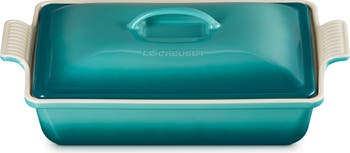 Signature triple-ring details marks this classic rectangular stoneware casserole that delivers even temperatures for food that's cooked perfectly every time.