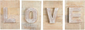 Spread love in your home with this distressed wood farmhouse LOVE Wall Art Décor. Add some cozy, farmhouse vibes to any bare walls that need a little rustic charm. With a width of 40in., complement any area that needs a little love. Perfect for a kitchen, entryway, or living room. Our carefully curated selection of wall hangings will help to make any room shine with personality.