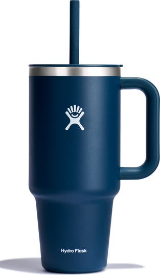 Stay hydrated on the go with this large, 40-ounce insulated travel tumbler that keeps drinks cold for up to 24 hours. The durable design features an ergonomic handle, a flexible straw and a splash-resistant Press-In Straw Lid for easy sipping. The sweat-free Color Last™ powder coating is colorful and comfortable to the touch.