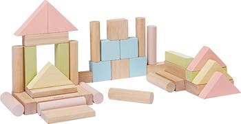 Unleash your kiddo's imagination with this delightful 40-block set made of chemical-free rubberwood perfect for budding architects. Through play, children will develop problem-solving skills, imagination, self-expression, mathematics, continuity, permanence and creativity.