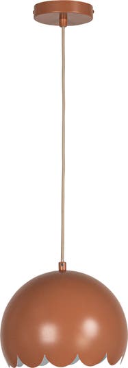 This Metal Scalloped Pendant Lamp is an embodiment of elegant design and practical functionality. Its round shape, measuring 9.75 inches across, is complemented by a height of 7 inches, making it an ideal lighting solution for various settings. The clay color adds a touch of earthiness, while the scalloped edges provide a decorative flair. The lamp is hardwired and comes with a 6-foot cord, allowing for flexible installation. The canopy, matching in clay color, measures 4.75 inches round, completing the lamp's cohesive look. Designed to accommodate a 40-watt bulb, this pendant lamp is not only a source of light but also a statement of style. The pendant lamp's minimalist design and neutral color make it versatile enough to fit into any room decor, from modern to traditional. Its durable construction ensures long-lasting use, making it a practical and stylish addition to the home.