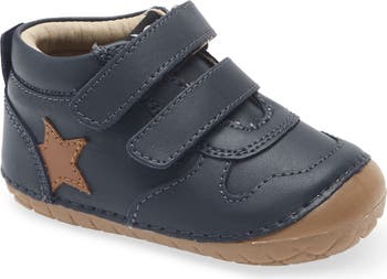 Designed for little feet on the move, this sporty leather sneaker features a cushioned footbed and padded collar to keep growing feet supported from playground to playdate. Easy hook-and-loop straps make on-and-off a breeze for kids and parents alike.