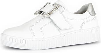 Heighten your style while staying comfortable in this handcrafted platform sneaker featuring a sparkly buckle and a removable cushioned insole.