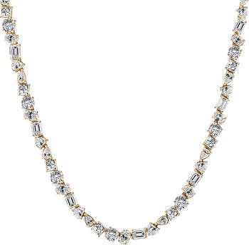 45Ct Fancy Diamond Multi Shape Tennis Necklace 14k Gold Lab Grown