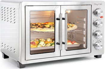 Elevate your cooking experience with the MegaChef 47.6 Quart Electric French Door Multi-Function Countertop Oven. With its impressive 47.6 Quart capacity, this oven is designed to handle large meals and gatherings with ease. Operating at 120V and 1800 watts, it provides powerful and consistent heat, ensuring perfect results every time. The adjustable temperature control reaches up to 450°F, offering precise cooking for a variety of dishes. A 60-minute timer with a bell ring helps you keep track of cooking times, while the four-piece stainless steel heating elements ensure even and thorough heat distribution.This oven features a sleek, fully stainless steel construction and a sophisticated French door design that adds a touch of elegance to your kitchen. It comes equipped with versatile functions, including broil, bake, and toast, along with additional features like rotisserie, convection cooking, and a lamp for enhanced visibility. The included accessories-an aluminum bake tray, wire rack, crumb tray, and rotisserie set-provide everything you need for diverse cooking tasks and easy cleanup. Combining style, functionality, and performance, the MegaChef 47.6 Quart Electric French Door Multi-Function Countertop Oven is the ultimate appliance for all your culinary needs.