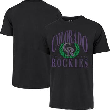 Add vintage flair to your Colorado Rockies game day look with this '47 Pitchout Franklin T-Shirt. This tee features vintage-inspired distressed graphics for a worn-in look and feel. The team logo, accented with a branch border, and team wordmark, is printed across the chest for an unmistakable display of Colorado Rockies pride.