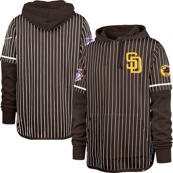 Bring a vintage aesthetic to your San Diego Padres fandom with this '47 Pinstripe Double Header Pullover Hoodie. This hoodie boasts a classic pinstripe design, adding a touch of vintage charm to your San Diego Padres game day look. The embroidered fabric applique graphics proudly displays your team spirit, ensuring you stand out in the crowd.