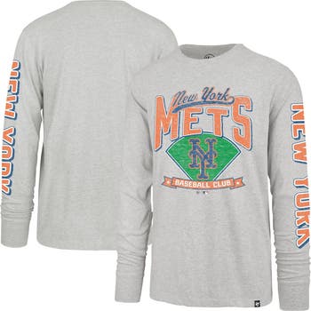 Cheer on the New York Mets from the ballpark to the living room in this '47 Fair Ball Franklin Long Sleeve T-Shirt. This long sleeve New York Mets tee features distressed screen print graphics on the chest and sleeve for vintage-inspired style. Plus, the rib-knit cuffs and neckline offer a snug, comfortable fit.