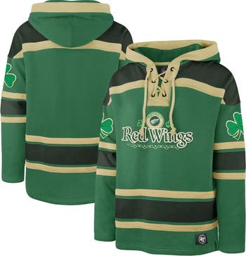Celebrate your Irish pride and Detroit Red Wings fandom with this festive '47 McLucky Superior Lacer Pullover Hoodie. With embroidered fabric appliqus and a waffle-print hood lining, this pullover hoodie offers a unique touch of style. The lace-up neckline with six metal grommets adds a bold and edgy element, making it a standout piece in any Detroit Red Wings fan's wardrobe.