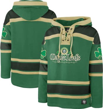 Celebrate your Irish pride and Toronto Maple Leafs fandom with this festive '47 McLucky Superior Lacer Pullover Hoodie. With embroidered fabric appliqus and a waffle-print hood lining, this pullover hoodie offers a unique touch of style. The lace-up neckline with six metal grommets adds a bold and edgy element, making it a standout piece in any Toronto Maple Leafs fan's wardrobe.