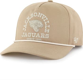 Top off your Jacksonville Jaguars wardrobe with this '47 Canyon Ranchero Hitch Adjustable Hat. Made from 100% cotton, this hat offers a comfortable and relaxed fit with its four-panel construction and adjustable snap closure. It boasts a unique design with embroidered team graphics on the front panels and rope decoration on the bill, making it a stylish way to rep your Jacksonville Jaguars fandom.