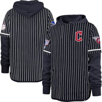 Men's '47 Navy Cleveland Guardians Pinstripe Double Header Pullover Hoodie