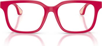 Golden logo hardware emboldens the temples of rectangular optical glasses that make a smart, polished statement.