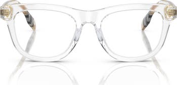 Iconic check details and a classic logo mark the temples of these smart optical glasses crafted in Italy.