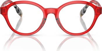 A signature Burberry design highlights these optical glasses that are made in Italy make a smart, chic statement with your everyday look.