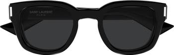 Subtle hardware and signature logos pop against the frames and temples of Italian-made sunglasses shaped in a round profile and made from recycled acetate.