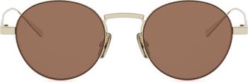 Engraved logos at the temples lend subtle distinction to a pair of Italian-made sunglasses featuring a sleek metal frame with a retro-chic silhouette.
