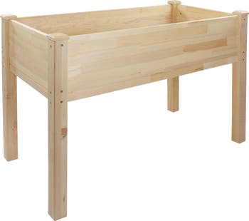 Our natural raised garden bed is made from non-toxic Canadian Hemlock wood, a popular choice for planter boxes, and known for its strength and durability. The natural wood grain on the boards will add a rustic and natural style to your garden or patio. Designed with a nearly 4-foot-long bed, it is large enough to ensure your plants and vegetables can breathe and grow healthy. The raised structure allows you to easily manage and maintain your plants without having to bend down. Product features: Color: natural Solid hemlock wood ensures durability and solidness, keeping the bed stable and durable to support the weight from the soil and plants The 30-inch tall design removes the need for bending or kneeling Includes a black fabric landscape bed liner that separates the wood from the soil keeping the planter in good condition Some minor assembly required - quick and easy setup Overall dimensions: 30"H x 48.5"L x 24.25"W Bed dimensions: 8.5"H x 45.5"L x 21.25"D Material(s): wood