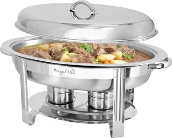 Elevate your dining experience with the MegaChef 5.8 Quart Stainless Steel Oval Chafing Dish, the perfect blend of elegance and functionality for any occasion. Crafted from high-quality stainless steel, this chafing dish not only ensures durability but also provides a sleek, polished finish that complements any buffet setup. With a generous 5.5-liter capacity, it's designed to hold ample servings of your favorite dishes, making it ideal for parties, weddings, and family gatherings. The oval shape maximizes presentation, allowing guests to enjoy a beautiful display of culinary delights. The sturdy construction features built-in handles for hassle free set up and transport. Whether you're serving savory stews, delicious pastas, or mouth-watering roasts, the MegaChef Chafing Dish is your go-to solution for keeping food warm and inviting. Impress your guests and simplify your hosting with this stylish and practical addition to your kitchenware collection!