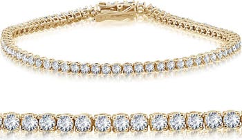 Women's bracelet features round cut lab grown diamonds set in solid 14k yellow gold. Bracelet measures 7".