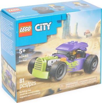 Young race car lovers ages five and up can buckle up for high-speed drag racing action with the LEGO® City Hot Rod car toy (60485). This model car building kit packs big thrills with detailed racing features including oversized rear tires, a driver cockpit with a lift-up roof and a cool purple color scheme with neon green flames. Just add the driver minifigure for fast-paced pretend play. This small playset makes a great birthday gift or surprise treat for kids, boys and girls who love classic toy cars, building and imaginative storytelling.