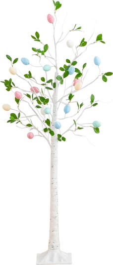 Bring the freshness of spring indoors with this 5-Ft pre-lit artificial Easter twig tree. Accented with colorful egg-shaped LED ornaments and soft-hued green leaves, this piece captures the whimsy of a blooming garden in the sweetest way. Each pastel crackle finished egg adds texture and charm, while the soft lights create a warm, inviting glow. Inspired by nature’s seasons, the white birch branches and sparse greens are perfect for DIY styling in entryways, kids’ rooms or classroom. Plug it in, let it sparkle, and enjoy a little touch of spring magic even beyond Easter. For a custom look, shape and bend the branches to fit in your desired space.