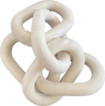 Small chain is made of 5 solid wood links that is playful and serene. It can be hung as an art piece or arranged as a centerpiece.