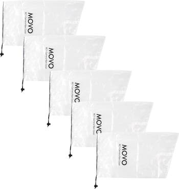 **5 PACK** of Completely See-Through Polyethylene Rain Covers with Drawstring Closures Accomodates a DSLR Camera & Lens up to 18" (46cm) Long x 7" (18cm) Wide Protects Against Rain, Dust, and Mud Full Access to Camera Controls & Viewfinder Tripod Mountable Movo RC-series Waterproof Clear Rain Cover protects your camera, and lens from the worst the weather has to offer without stopping you from getting great photos. Protects your whole camera rig - including the tripod mount. Rain, snow, sand, and windblown grit are unavoidable on some assignments. Proper preparation is essential for protecting your valuable gear and ensuring the best photos. - prepare yourself with these disposable rain covers. Certified waterproof polyethylene ensures that no precipitation penetrates the camera space and gives you an unobscured look at your camera settings and controls. The drawstring cinch closure quickly locks the cover into place around your without getting in the way of shots. Accomodates a DSLR Camera & Lens up to 18" (46cm) Long x 7" (18cm) Wide. Allows full access to camera controls, flash and viewfinder.