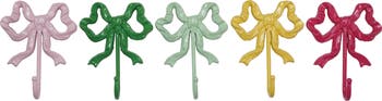 - An adorable set of 5 metal wall hooks shaped like bows, available in various colors