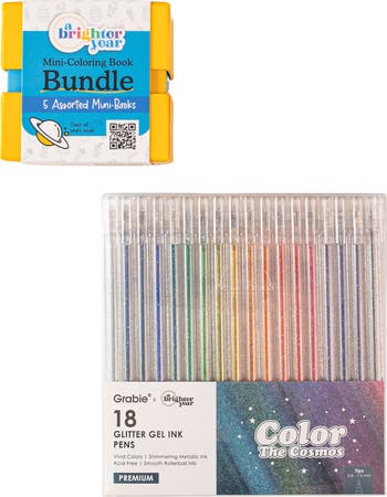 - Includes: 5 mini adult coloring books + keeper box + 18 gel pens