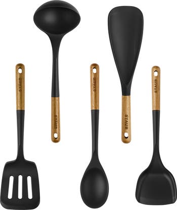 - Set includes 2-in-1 multifunction spatula spoon, ladle, wok turner, slotted turner and serving spoon