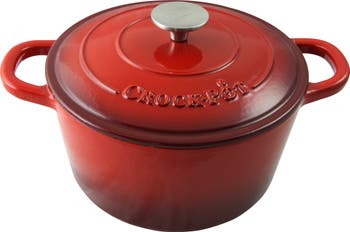 Gibson Home presents the 5 Quart Artisan Crock-Pot Cast Iron Dutch Oven with a Self-basting Lid, ideal for delicious dinners for any occasion. The self-basting lid creates a continuous basting environment for more flavorful meals. The Dutch Oven distributes and retains heat evenly and allows for a multitude of cooking techniques. The oversized handles and stainless steel knob provide a sturdy grip for easy handling and carrying.Crock Pot: 11.50" x 10.80" x 11.80" Capacity: 160 FL OZ Features:* Made of enameled cast iron with a non-stick surface for even heat distribution and retention* Perfect for cooking, serving and storing * Oversized handles for easy handling* Self basting lid* Easy to clean and rust free* Hand wash recommended
