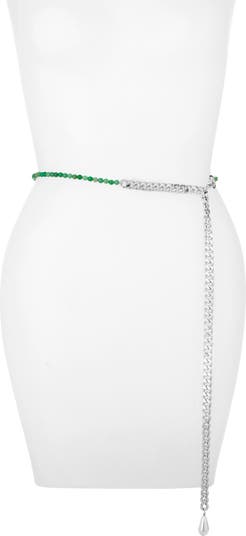 Infuse your looks with a little extra shine in this goldtone belly chain that's half jade and half curb chain anchored by an imitation pearl.