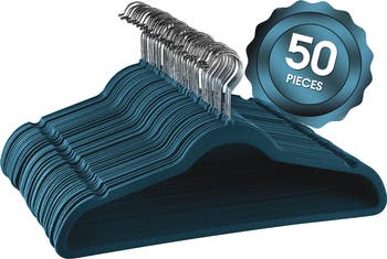 50 Piece Flocked Velvet Clothes Hangers with Stainless Steel Swivel Hooks