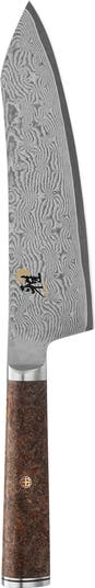 How it's made: Handcrafted in Seki, Japan, the blade is constructed of micro-carbide powdered MC66 steel, which is ice-hardened to an impressive 66 HRC. This results in an exceptionally sharp and lasting edge. The blade is wrapped in 132 additional layers of steel, resulting in a beautiful floral damascus pattern. The handles of the Miyabi Black series are made from beautiful black maple, which contrasts stunningly with the pattern on the blades.