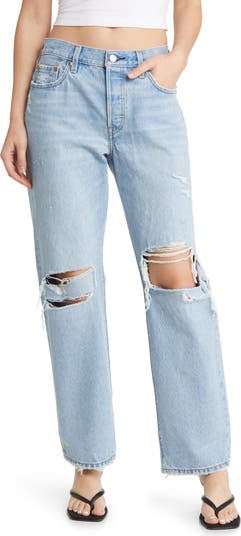 Like a vintage pair you've always dreamed of finding, these nonstretch jeans feature relaxed, full-length straight legs and edgy ripped knees.