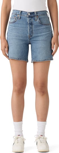 Soft and lightweight, these weekend-ready denim shorts feature a high waist, a fitted silhouette and a mid-thigh length that's comfy and classic.