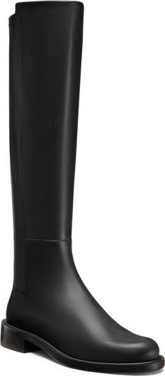 A stretchy back panel and knee-high profile bring comfortable wear and versatility to a Spanish-made boot featuring a supple suede upper and set on a low heel for walkable height.