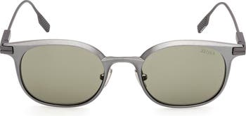 Round, retro-inspired frames define these lightweight sunglasses designed with adjustable nose pads for a customized fit.