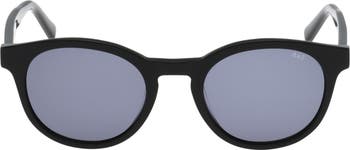 Subtle hardware accents the hinges and temples of lightweight acetate sunglasses shaped in a retro round profile.