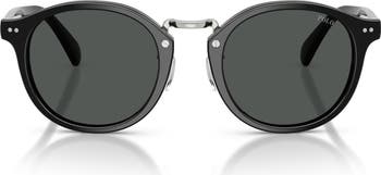 A polished bridge and logo-marked temples bring a distinctive look to Italian-made sunglasses with a round, retro-inspired silhouette.