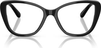 Softly rounded cat-eye frames adds chic flair to these sleek optical glasses and features signature logo branding at the textured temples.