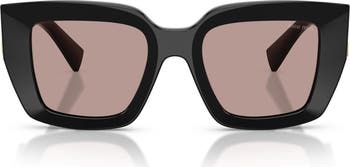 Signature logo hardware glints at the hinges and temples of Italian-made sunglasses featuring sharp square frames and gradient lenses.