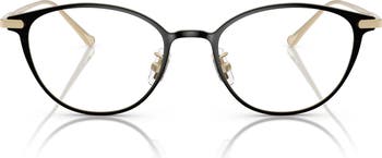 Slim titanium frames and logo-marked temples define oval glasses featuring adjustable nose pads for a secure fit.