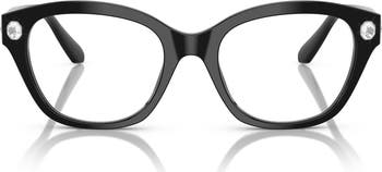 Signature crystals dot the pillow-shaped frame and slender temple of these chic optical glasses.