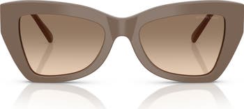 Signature logos and chain-link hardware elevate the temples of everyday sunnies shaped in an angular butterfly silhouette for stylish appeal.