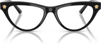 Logo medallions make a signature statement at the temples of these cat-eye optical frames crafted in Italy.